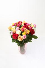 Zloženie: Kytica z 25 ruží doplnená zeleňou, gypsophillou alebo trávou, previazaná stuhou - farebnosť ruží nám uvediete do poznámky v objednávkovom formulári - jemná kytica romantických ruží rozdáva radosť, úsmev a priateľstvo.